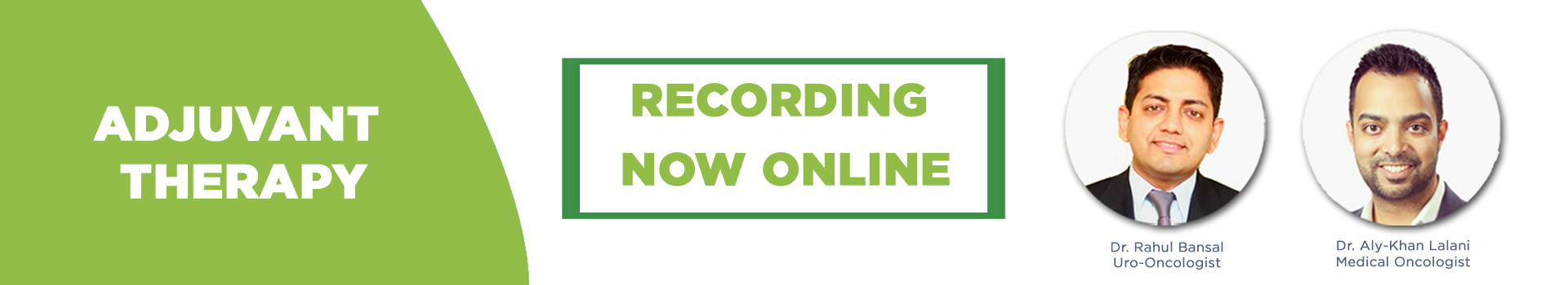 The session focuses on learning about adjuvant therapy with leading kidney cancer specialists, Dr. Rahul Bansal, Uro-Oncolgist and Dr. Aly-Khan Lalani, Medical Oncologist.