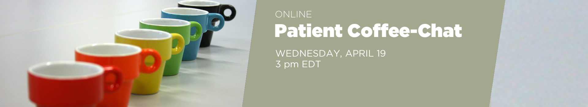 Join us for our upcoming PATIENT Coffee-Chat, Wednesday, April 19, 3 pm EDT.
