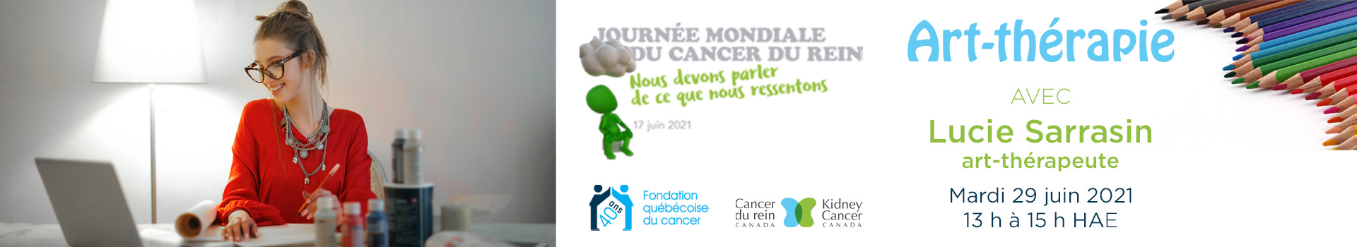 C’est dans cet état d’esprit, que Cancer du rein Canada s’est associé à la Fondation québécoise du cancer pour offrir un atelier d’art-thérapie à la collectivité du cancer du rein. La Fondation québécoise du cancer a été le premier organisme à offrir l’art-thérapie en cancérologie.