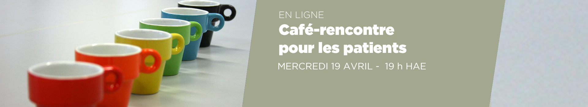 Joignez-vous à nous lors de notre prochain café-rencontre en ligne pour les PATIENTS, mercredi 19 avril à 19 h HAE.