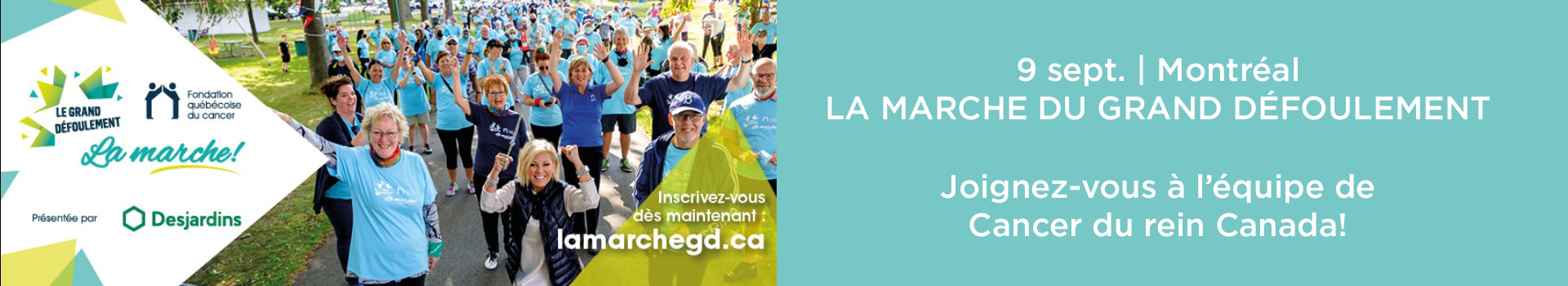 Cancer du rein Canada participera à La marche du grand défoulement de la Fondation québécoise du cancer, le samedi 9 septembre à Montréal au parc Frédérick-Back (2345 rue Jarry E, Montréal – 9 h 30 à 12 h)