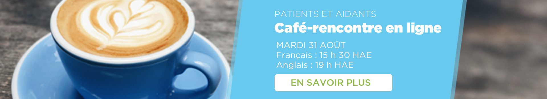 Joignez-vous à nous lors de notre prochain café-rencontre en ligne, mardi 31 août.