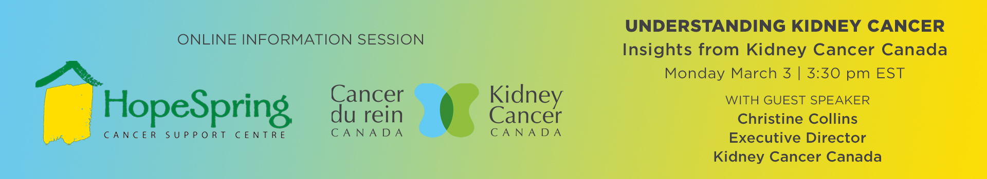 HopeSpring Cancer Support Centre is proud to present a special speaker series in collaboration with Kidney Cancer Canada, a national charitable organization dedicated to improving the lives of those affected by kidney cancer.